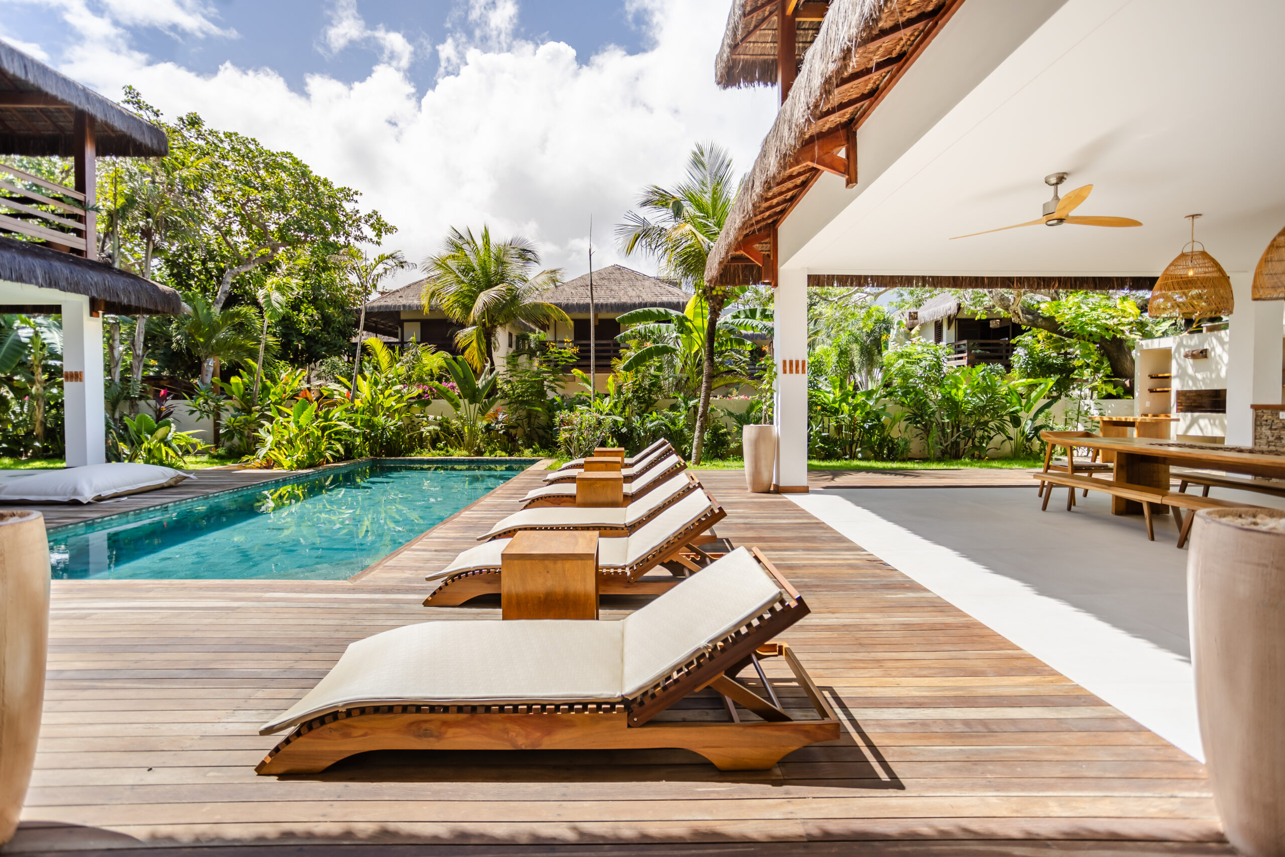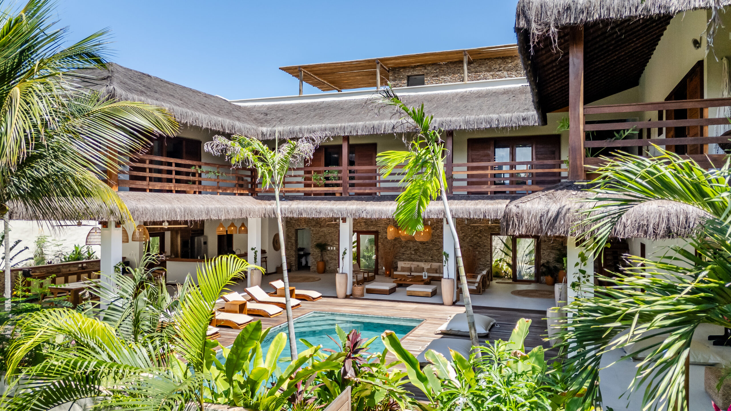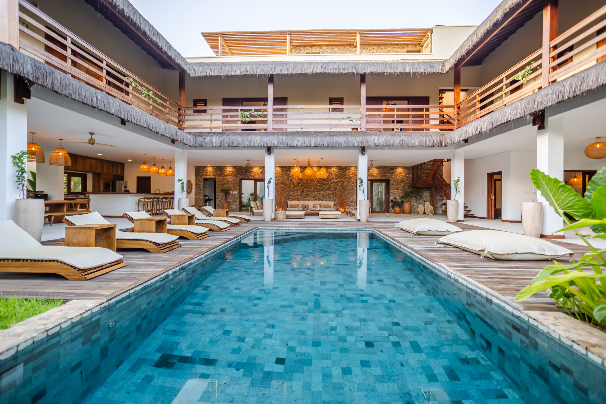 Sua área externa dispõe de uma piscina privativa, espaço gourmet com churrasqueira e salão de jogos, além de um Rooftop privativo com uma belíssima vista de Jeri.